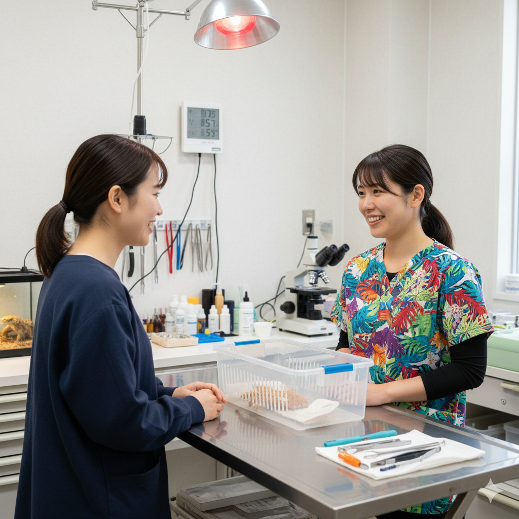 病院での診断は必要なのか?と迷う飼い主さまもいらっしゃいますが、早期の受診が重症化を防ぐ最善の手段です。クレステッドゲッコーの健康維持には、信頼できる動物病院の存在が欠かせません。