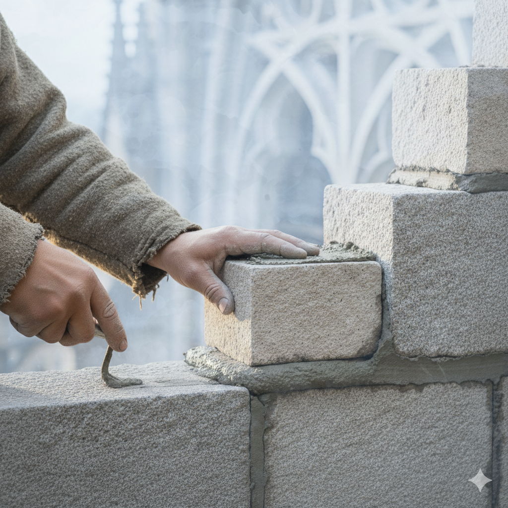 ある旅人が町を歩いていると、レンガを積んでいる3人の職人に出会いました。