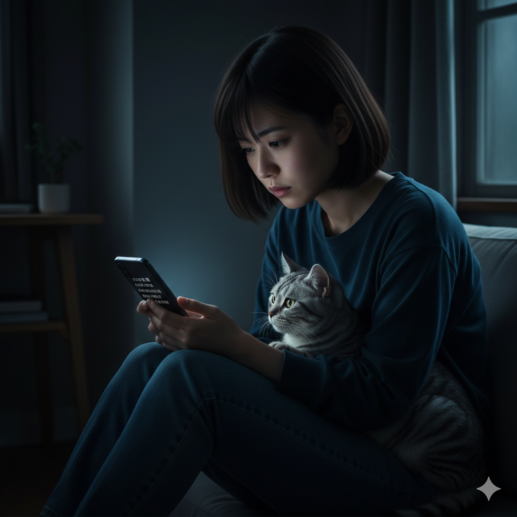 夜、スマホを片手にソファでくつろぎながら、ふとペットの様子が気になる。