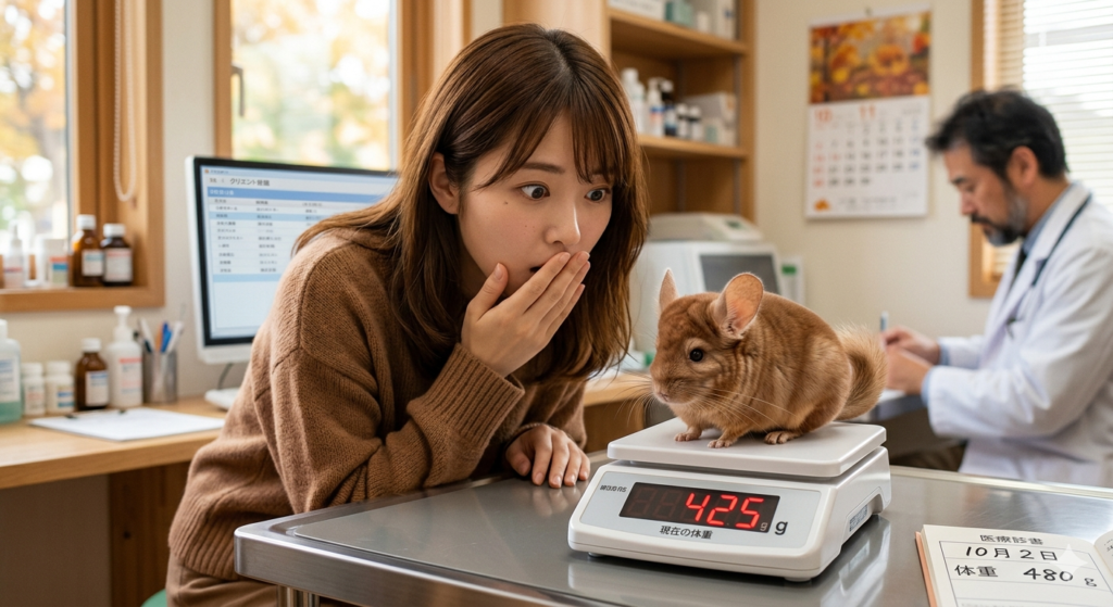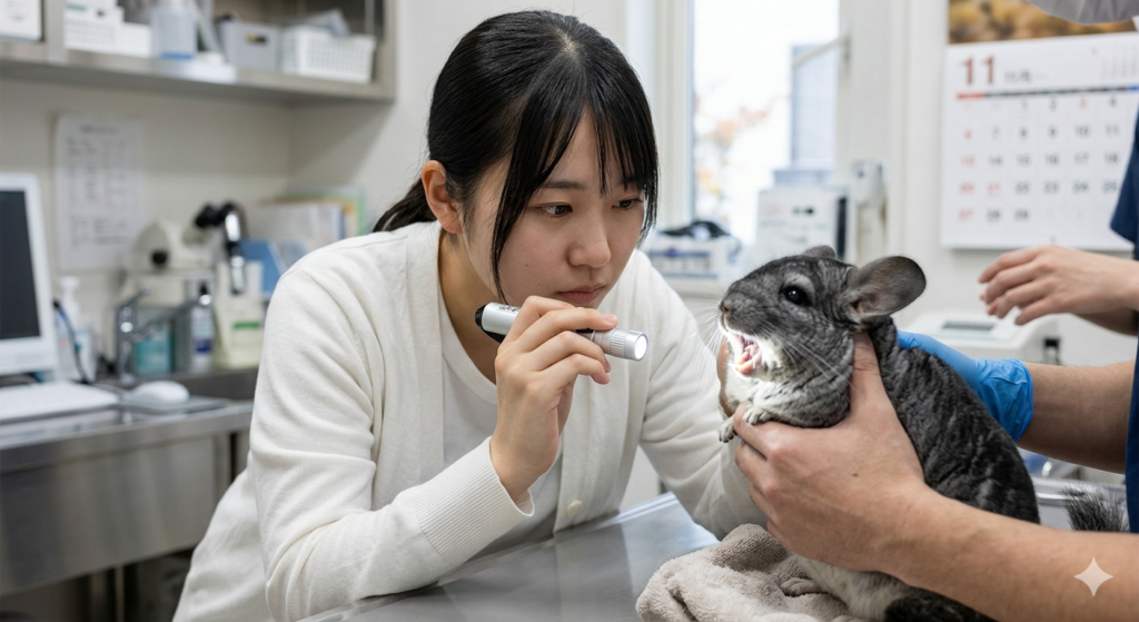 チンチラは消化管が常に動く必要がある動物で、食欲不振はすぐに胃腸うっ滞につながります。丸1日食べない場合は緊急受診が必要です。