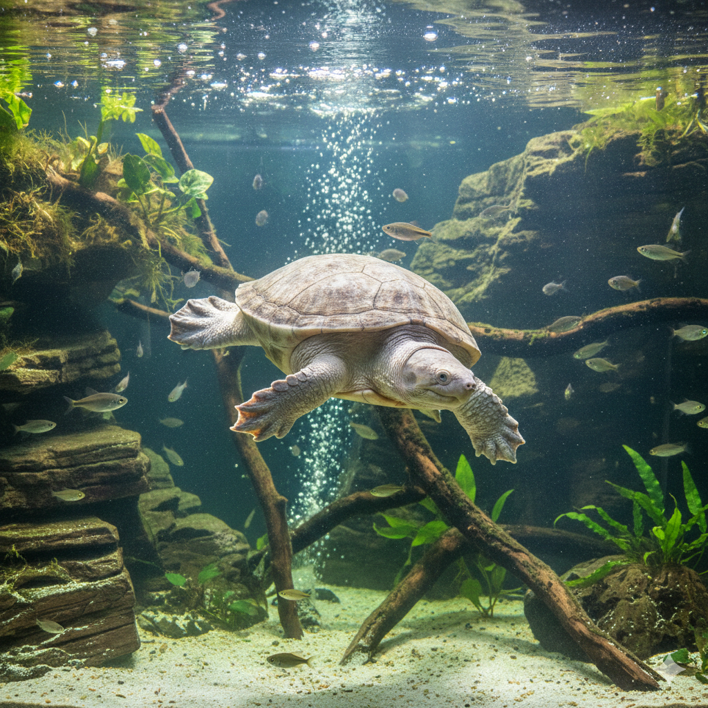 特にスッポンモドキは完全水棲のカメであり、水槽環境の影響を一生受け続けます。