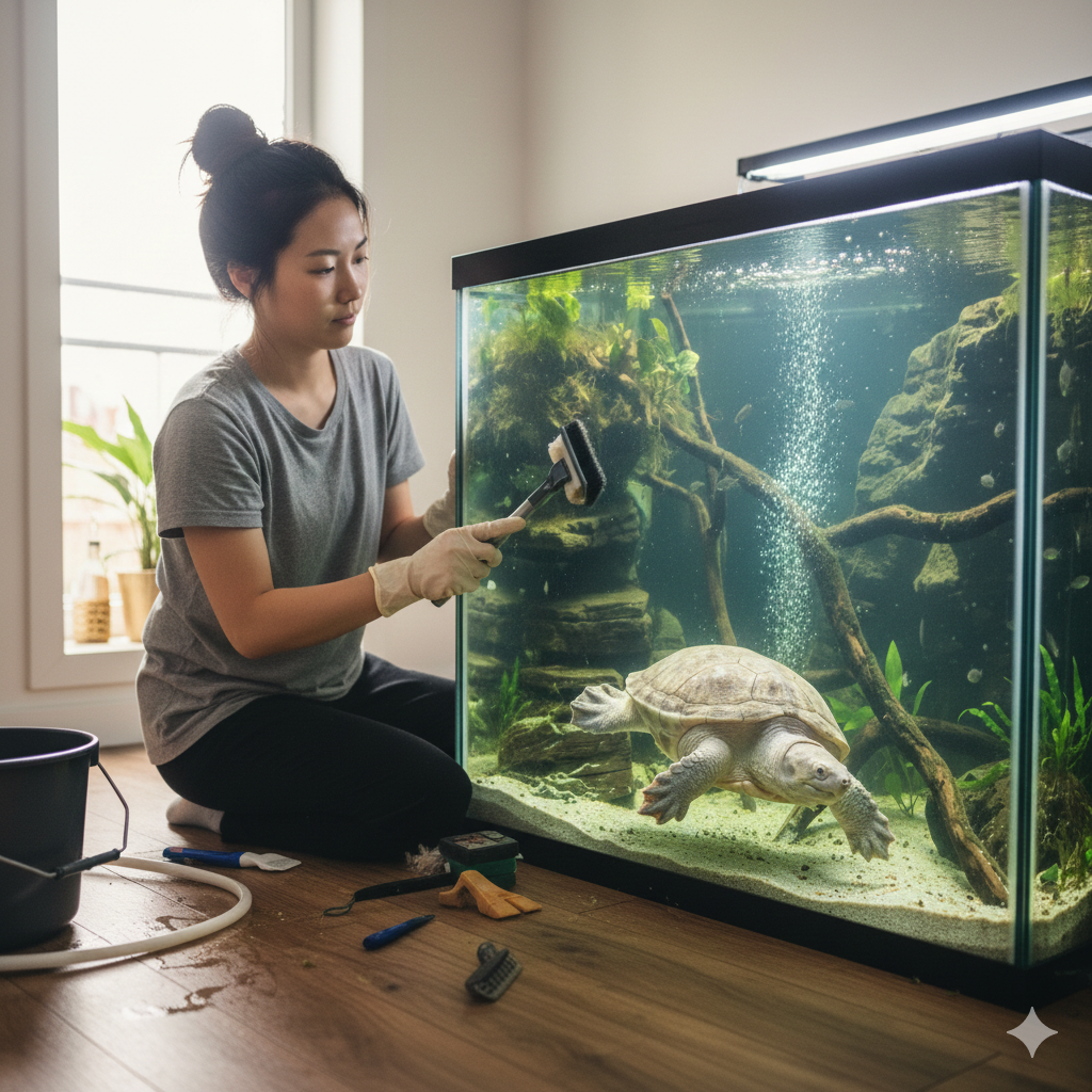 水棲カメを飼育して、涼を楽しむと同時に、彼らにとって重要な水の管理にも心配りをお忘れなく。