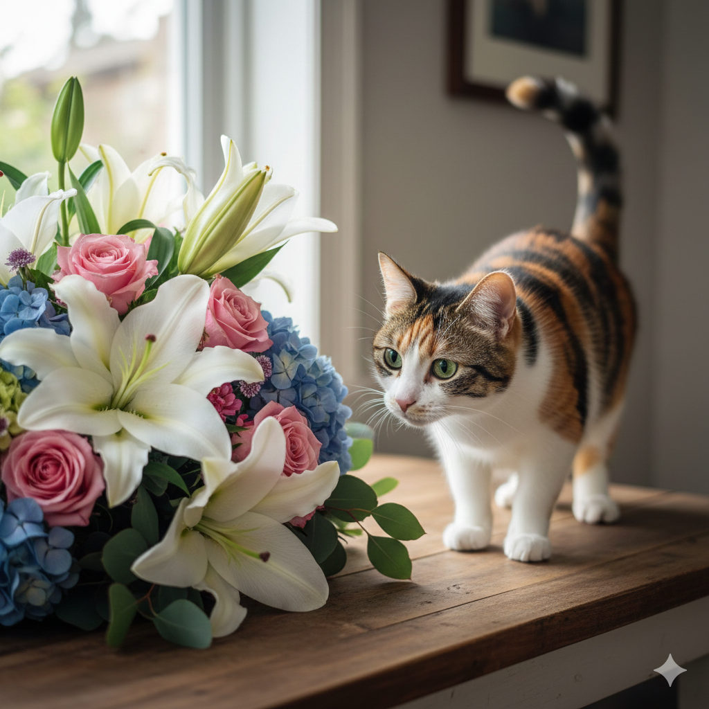 こうした形で、意図せずユリが室内に持ち込まれるケースは非常に多いのです。特に花屋さんでは、ユリは「華やかで長持ちする花」として頻繁に使われるため、注意が必要です。