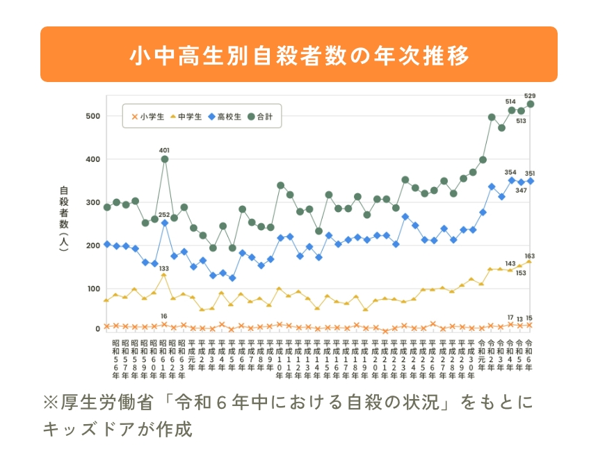 • 小学生の自殺は少数ですが、心理的ストレスのサインを見逃すと危険が大きくなるため、早期対応が必要です。