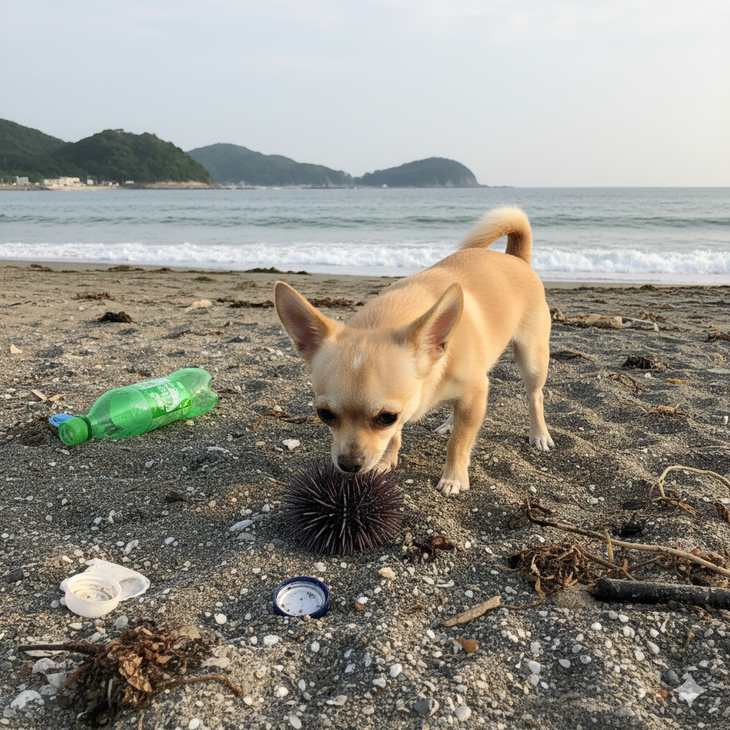 海辺には死んだ魚や甲殻類、ウニやヒトデの死骸、腐敗した海藻、釣り針や釣り糸など、多くの危険物があります。これらを口にすると、細菌性食中毒、消化管穿孔、中毒、腸閉塞など命に関わるトラブルを引き起こす可能性があります。拾い食いをした直後や、その後に体調変化が見られた場合は、すぐに動物病院へ相談してください。