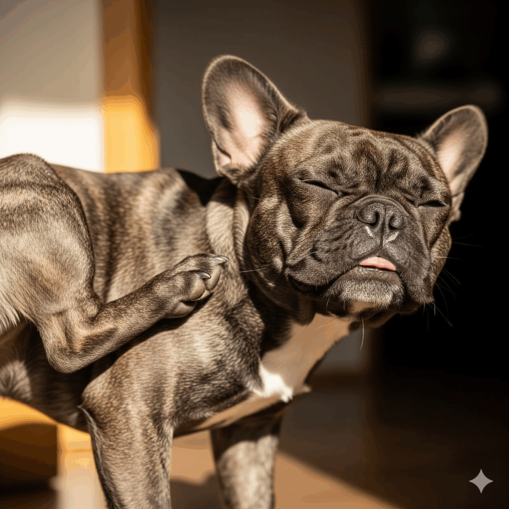 犬がしきりに体を掻いたり、舐めたり、噛んだりしているときは、皮膚病の典型的なサインです。