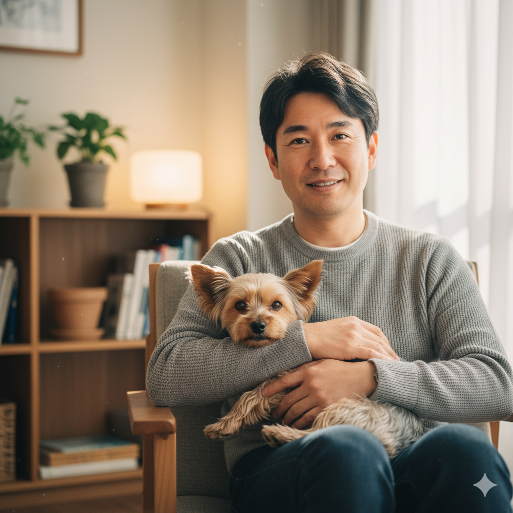 A: 就寝前の軽い運動、部屋を暗くしすぎない、小さな常夜灯、安心できる匂い(飼い主の衣類)などが有効です。どうしてもつらい場合は、獣医師判断で抗不安薬・抗うつ薬を併用することもあります。